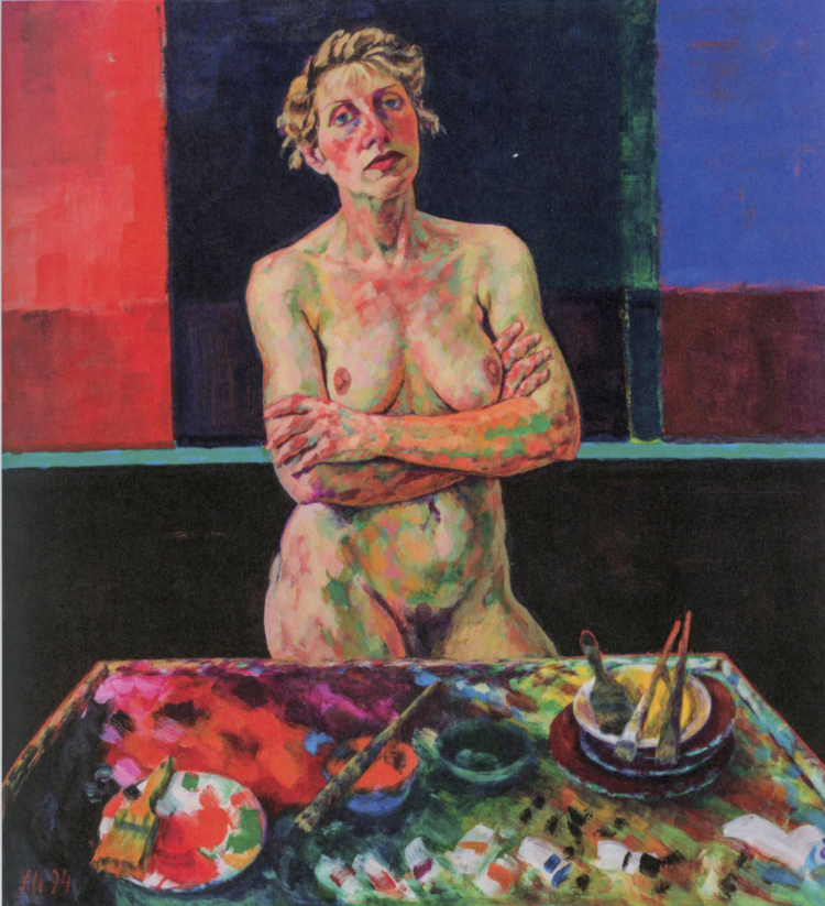 Wir sehen, was Künstler:innen sich für ein Bild von Menschen machen oder von sich selbst. Bilder (wie nebenan von Xenia Hausner), die der Flüchtigkeit der Welt widerstehen. Es ist eine große Bandbreite von Künstler:innen (15 insgesamt) vertreten, international wie regional (Gotthard