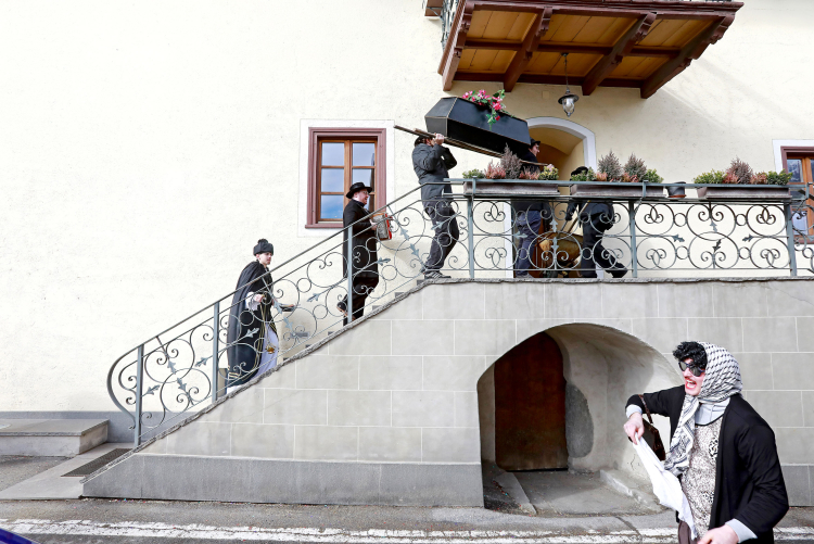 Es ist bitterkalt in Laatsch. Der berüchtigte Vinschger Oberwind wirbelt Schnee durch das Dorf. Ein Schneepflug räumt Schneeverwehungen von der Straße. Die kleine Ortschaft am Eingang zum Münstertal ist menschenleer. Nur von Weitem ist ein Schluchzen und Plärren zu hören. Und die Töne eines Akkordeons. Wird da ein Trauermarsch gespielt?