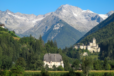 Burg Taufers ist eines der größten, schönsten und besterhaltenen Schlösser Tirols. Die gewaltige Festung thront in einzigartiger Lage auf einem Felsen, der das enge Ahrntal vom breiten, ebenen Talkessel abriegelt. Im Hintergrund beeindruckt die mächtige Kulisse der Zillertaler Dreitausender, ihnen zu Füßen liegt das Dorf Sand in Taufers.