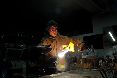Abends füllt Tommaso Colesanti die Gläser im Bozner Szenelokal „Da Picchio“. Tagsüber bläst er Gläser – und schafft Kunstwerke.