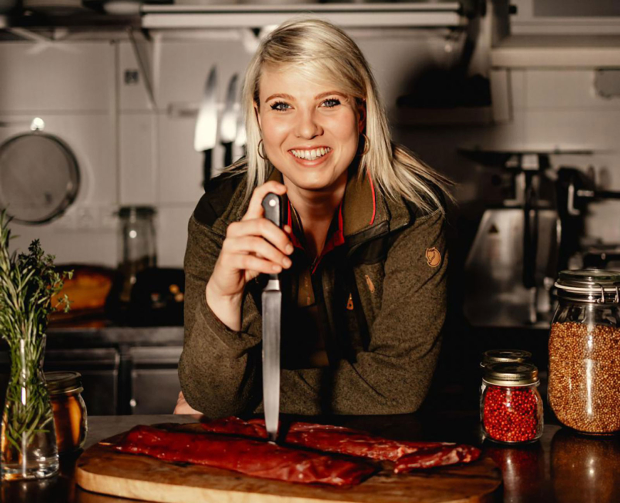 Die Köchin und Jägerin bewahrt die Ruhe, wenn es hektisch wird.