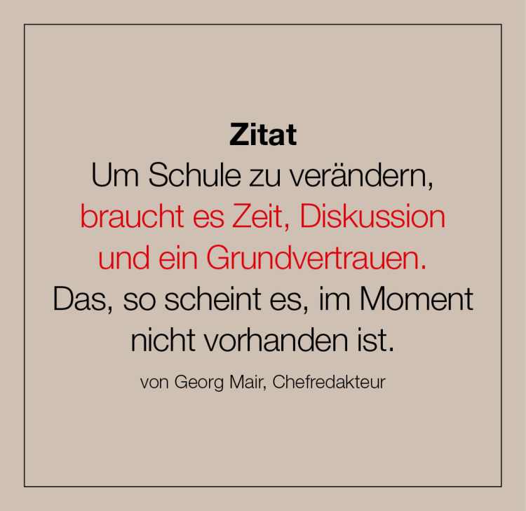 Wie Schule sein soll, darüber muss man endlich reden. So wie es ist, kann es nicht bleiben. Das wäre genauso wichtig wie Lohnverhandlungen – in einer Gesellschaft, die tief verunsichert ist. Und mit ihr die Kinder und Jugendlichen.
