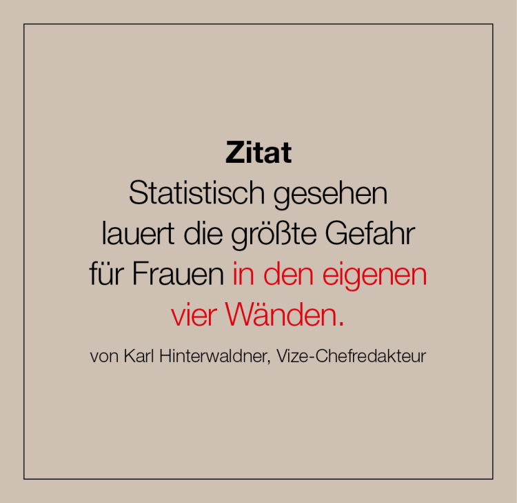 Wobei das Sicherheitsempfinden oft trügerisch sein kann. Ein Beispiel dafür ist die eigene Wohnung. Darin fühlt man sich sicher. Dabei trifft das nur auf den ersten Blick zu. Das gilt vor allem für Frauen. Denn statistisch gesehen lauert die größte Gefahr für sie nicht auf der Straße, sondern in den eigenen vier Wänden. Und zwar nicht weil die Einbrecher kommen, sondern weil der Partner zuschlägt.