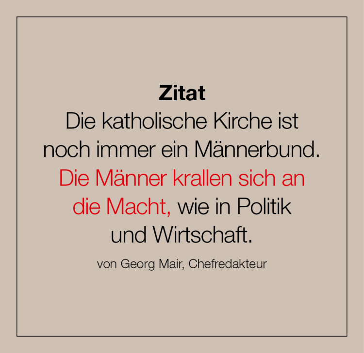 Warum bloß hält die katholische Kirche an der jahrhundertealten Diskriminierung der Frauen fest? Dabei sind sie es, die den Laden schmeißen. von Georg Mair, Chefredakteur