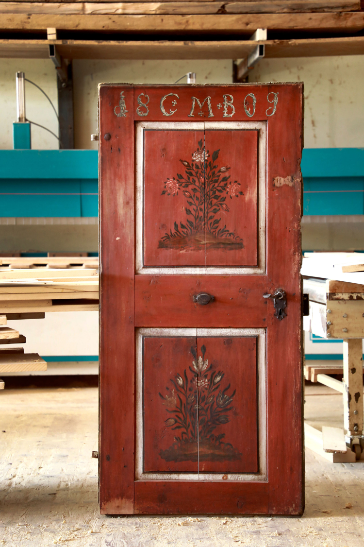 Das Licht fällt schräg durch die hohen Fenster der Werkstatt. In der Luft schweben feine Staubkörner. Überall ist Holz – man sieht es in jeder Ecke, man riecht es, und gleich beim Eingang steht man bereits darauf. Auf dem Boden liegen Bretter: der Boden einer alten Stube aus Tiers. Daneben, auf einer Werkbank, ruht die Seitentäfelung einer weiteren Stube. Auch sie wird hier behutsam restauriert, damit sie eines Tages wieder ein Zuhause schmücken kann.