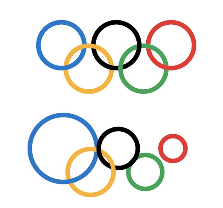 Die olympischen Installationen auf den Verkehrsinseln hingegen stehen für Ungleichheit: In Ringe übersetzt sieht die olympische Flagge nun so aus: