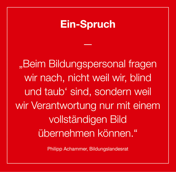 Zur Online-Befragung des Bildungspersonals: Wir fragen nach, nicht weil wir „blind und taub“ sind, sondern weil wir Verantwortung nur mit einem vollständigen Bild übernehmen können. Wir hören die Stimmen aus Schulen und Kindergärten – in Gesprächen, Protesten, Stellungnahmen. Diese zeigen aber auch: Belastungen und Erwartungen sind sehr unterschiedlich. Deshalb braucht es zusätzlich eine strukturierte, anonymisierte Befragung. Sie ersetzt den Dialog nicht, sie macht ihn belastbarer. Über 900 Rückmeldungen in sechs Tagen sprechen für sich. Manchmal wirkt es, als sei jede Entscheidung falsch: Fragt man nicht, heißt es, man handle ohne Grundlage. Fragt man, heißt es, man solle eigentlich schon Bescheid wissen. Beides ist falsch. Die Herausforderungen sind groß. Wir wollen sie gemeinsam und rasch angehen – mit fundierten Daten und offenem Austausch. Die Befragung ist kein Ausweichen, sondern ein Werkzeug. Entscheidend ist, was wir danach tun.
