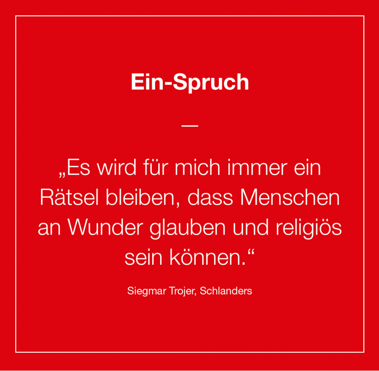 Es wird für mich immer ein Rätsel bleiben, dass Menschen an Wunder glauben und religiös sein können.