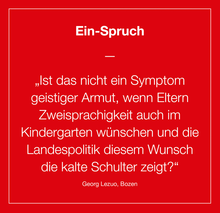 ff 2/26 über den Wunsch der Eltern nach mehr Italienisch im Kindergarten. Doch die Politik mauert. Warum bloß?